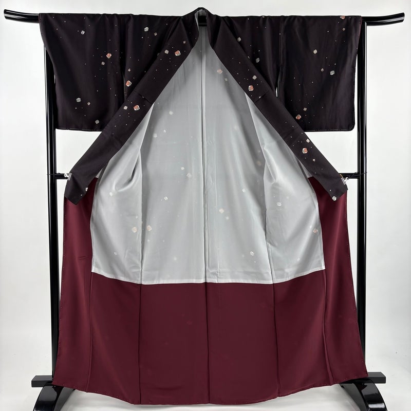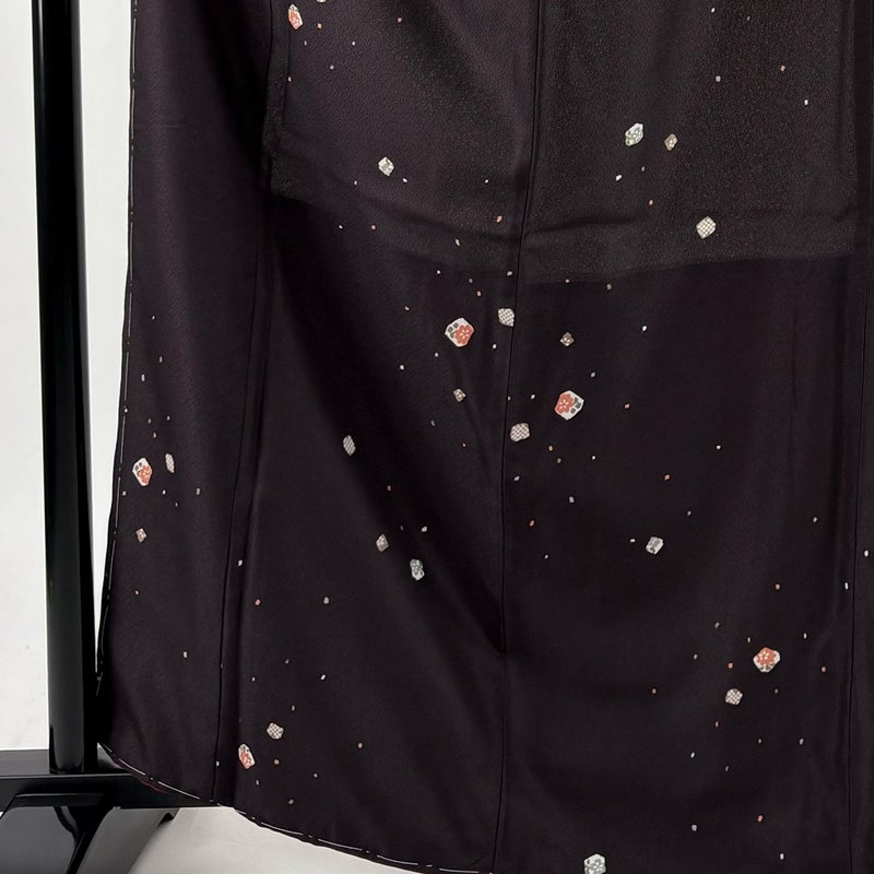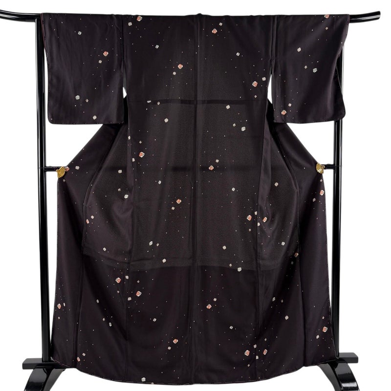 【着物ランク】優品 【素材】化繊 【身丈】約165cm 【裄丈】約66.5cm 【袖丈】約49.5cm 【袖幅】約34cm 【前幅】約25cm 【後幅】約30cm 【サイズ】M 【着物仕立て】袷 【着用時期】10~5月 【状態ランク】ランクA 【着物着用シーン】気軽なパーティー、観劇、食事会、正月、気軽なお茶会、街着