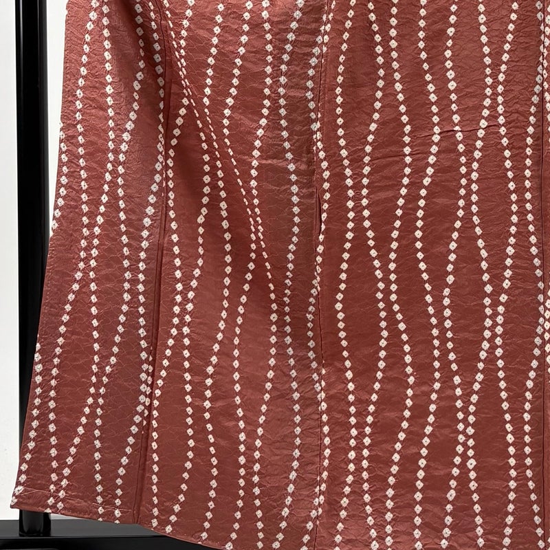 お洒落着として楽しめる小紋でございます。 お稽古や観劇、同窓会や友人との食事会など様々なシーンで楽しめます。 ※身丈・裄丈の縫込みの長さは測っておりません。 下前にシミ、後身頃にシワがございます。 衿裏と胴裏と八掛所々にシミがございます。 リユース品としては良い状態で、まだまだご活用頂けると思われます。 ※なお、厳しく商品の状態確認を行っておりますが、記載の汚れ以外にも見落とし箇所がある可能性がある旨ご了承いただけますと幸いです。 沢山の商品の中からご覧いただき誠にありがとうございます。