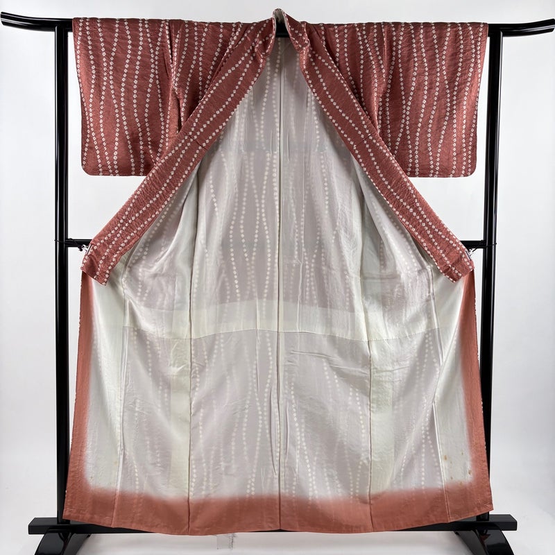【小紋】 赤系 濃ピンク 優品 B 約160cm~約169cm 裄丈62cm以下 (S)size 袖丈47cm -3980 二万以下