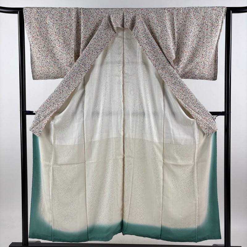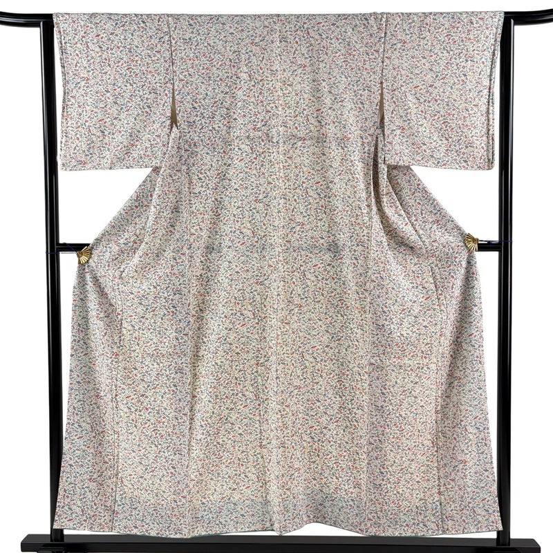お洒落着として楽しめる小紋でございます。 お稽古や観劇、同窓会や友人との食事会など様々なシーンで楽しめます。 ※身丈・裄丈の縫込みの長さは測っておりません。 表地所々にヤケ、両袖前後にシワがございます。 八掛に薄いシミ、衿裏所々に下糸の変色がございます。 リユース品としては良い状態で、まだまだご活用頂けると思われます。 ※なお、厳しく商品の状態確認を行っておりますが、記載の汚れ以外にも見落とし箇所がある可能性がある旨ご了承いただけますと幸いです。 沢山の商品の中からご覧いただき誠にありがとうございます。