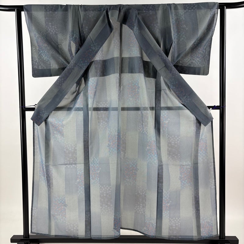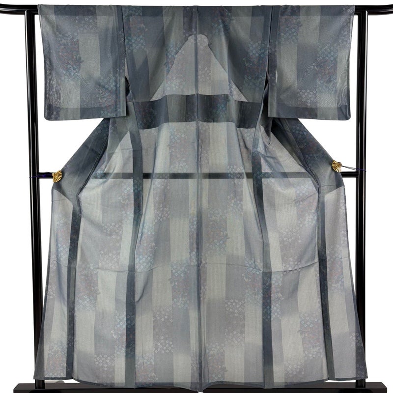 【着物ランク】優品 【素材】正絹 【身丈】約156cm 【裄丈】約62cm 【袖丈】約47cm 【袖幅】約32cm 【前幅】約27cm 【後幅】約30cm 【サイズ】S 【着物仕立て】薄物 【着用時期】7~8月 【状態ランク】ランクA 【着物着用シーン】気軽なパーティー、観劇、食事会、正月、気軽なお茶会、街着