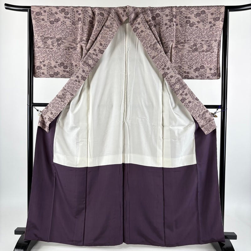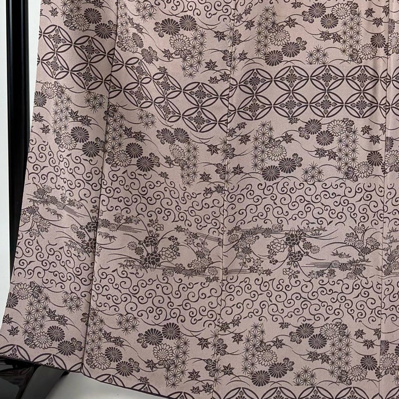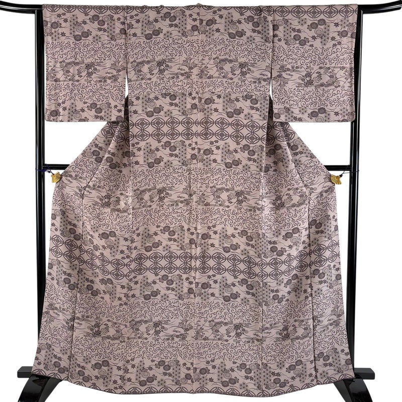 【着物ランク】優品 【素材】正絹 【身丈】約163.5cm 【裄丈】約65cm 【袖丈】約49cm 【袖幅】約35cm 【前幅】約24.5cm 【後幅】約29.5cm 【サイズ】M 【着物仕立て】袷 【着用時期】10~5月 【状態ランク】ランクB 【着物着用シーン】気軽なパーティー、観劇、食事会、正月、気軽なお茶会、街着