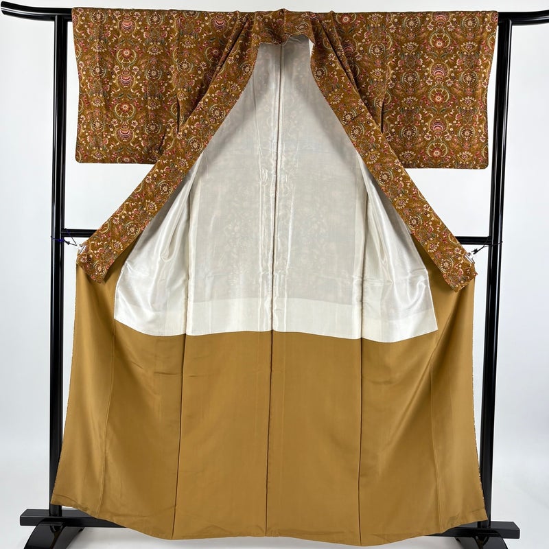 【着物ランク】優品 【素材】正絹 【身丈】約159.5cm 【裄丈】約61.5cm 【袖丈】約46.5cm 【袖幅】約32cm 【前幅】約24cm 【後幅】約29cm 【サイズ】S 【着物仕立て】袷 【着用時期】10~5月 【状態ランク】ランクB 【着物着用シーン】気軽なパーティー、観劇、食事会、正月、気軽なお茶会、街着
