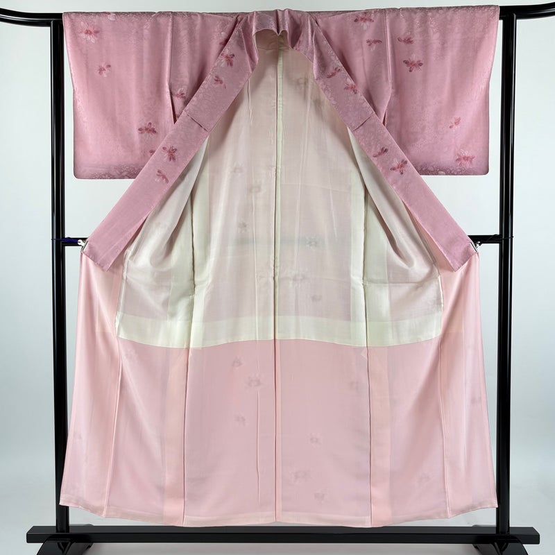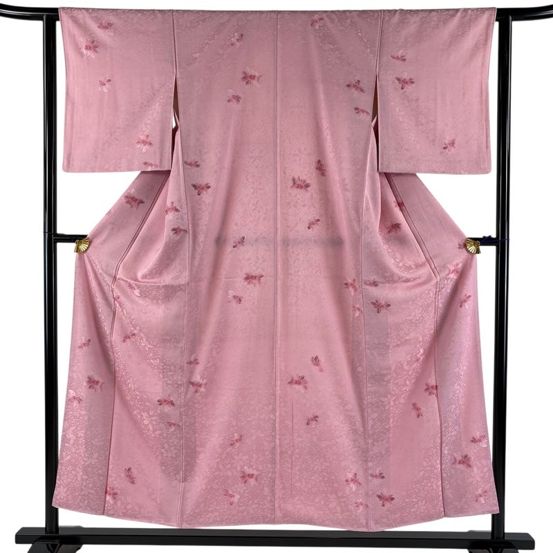 【着物ランク】優品 【素材】正絹 【身丈】約153.5cm 【裄丈】約61.5cm 【袖丈】約48.5cm 【袖幅】約32.5cm 【前幅】約22.5cm 【後幅】約28.5cm 【サイズ】S 【着物仕立て】袷 【着用時期】10~5月 【状態ランク】ランクB 【着物着用シーン】気軽なパーティー、観劇、食事会、正月、気軽なお茶会、街着