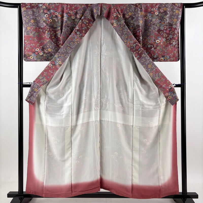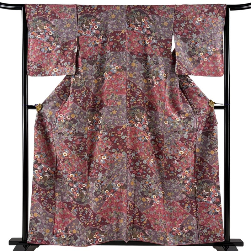 【着物ランク】優品 【素材】正絹 【身丈】約157.5cm 【裄丈】約65cm 【袖丈】約48cm 【袖幅】約32.5cm 【前幅】約23cm 【後幅】約29.5cm 【サイズ】M 【着物仕立て】袷 【着用時期】10~5月 【状態ランク】ランクB 【着物着用シーン】気軽なパーティー、観劇、食事会、正月、気軽なお茶会、街着