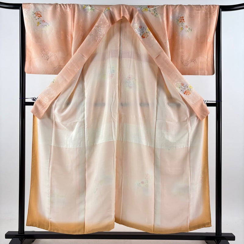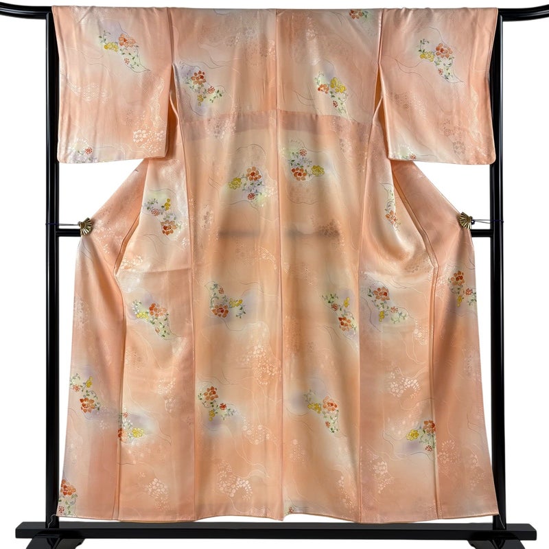 【着物ランク】優品 【素材】正絹 【身丈】約153cm 【裄丈】約66.5cm 【袖丈】約48cm 【袖幅】約33.5cm 【前幅】約24cm 【後幅】約30cm 【サイズ】M 【着物仕立て】袷 【着用時期】10~5月 【状態ランク】ランクA 【着物着用シーン】気軽なパーティー、観劇、食事会、正月、気軽なお茶会、街着