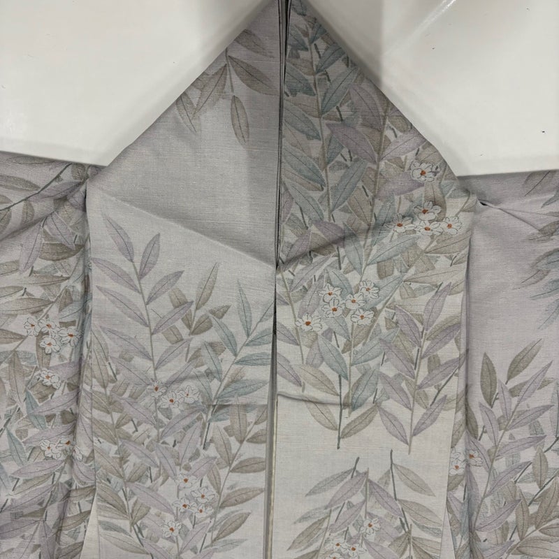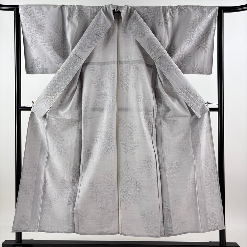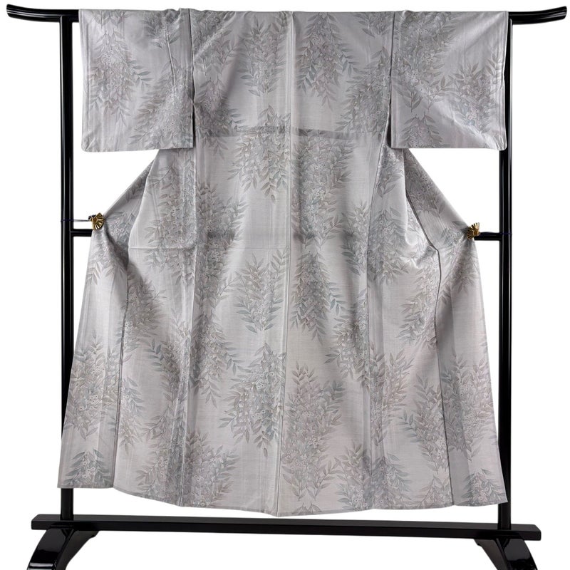 【着物ランク】優品 【素材】正絹 【身丈】約153.5cm 【裄丈】約64cm 【袖丈】約45cm 【袖幅】約33.5cm 【前幅】約24cm 【後幅】約30cm 【サイズ】M 【着物仕立て】単衣 【着用時期】6/9月 【状態ランク】ランクB 【着物着用シーン】気軽なパーティー、観劇、食事会、正月、気軽なお茶会、街着