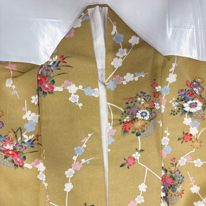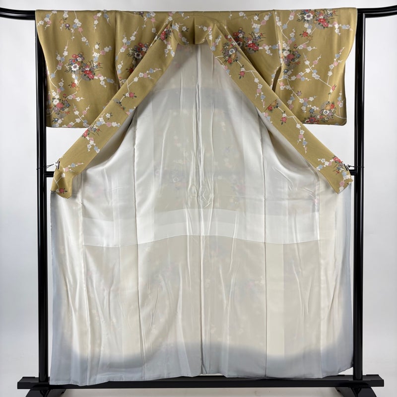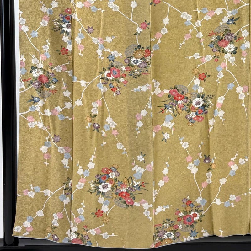 【着物ランク】優品 【素材】正絹 【身丈】約158cm 【裄丈】約64.5cm 【袖丈】約47.5cm 【袖幅】約33cm 【前幅】約23cm 【後幅】約27.5cm 【サイズ】M 【着物仕立て】袷 【着用時期】10~5月 【状態ランク】ランクB 【着物着用シーン】気軽なパーティー、観劇、食事会、正月、気軽なお茶会、街着