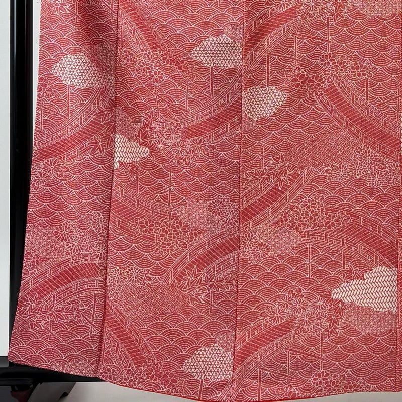 【小紋】 赤系 茜色 優品 A 約160cm~約169cm 裄丈63cm-64cm (M)size 袖丈50cm-60cm 4000-7980 美品 二万以下