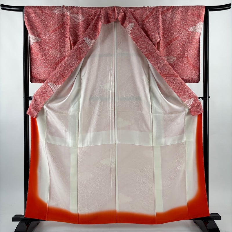 【着物ランク】優品 【素材】正絹 【身丈】約162.5cm 【裄丈】約64cm 【袖丈】約57.5cm 【袖幅】約34cm 【前幅】約24.5cm 【後幅】約28.5cm 【サイズ】M 【着物仕立て】袷 【着用時期】10~5月 【状態ランク】ランクA 【着物着用シーン】気軽なパーティー、観劇、食事会、正月、気軽なお茶会、街着