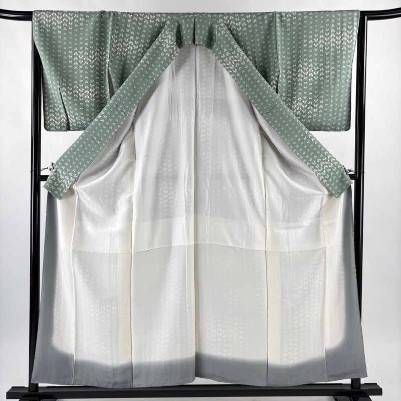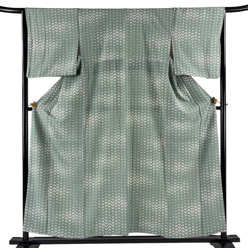 【小紋】 灰色系 灰緑 優品 A 約150cm~約159cm 裄丈65cm (M)size 袖丈49cm 4000-7980 美品 二万以下