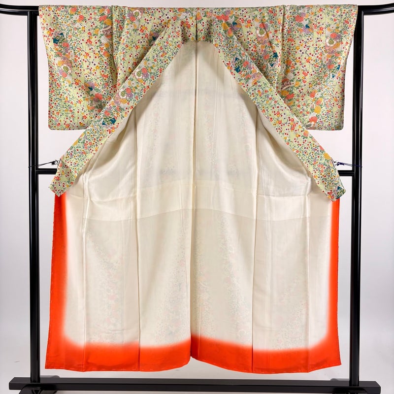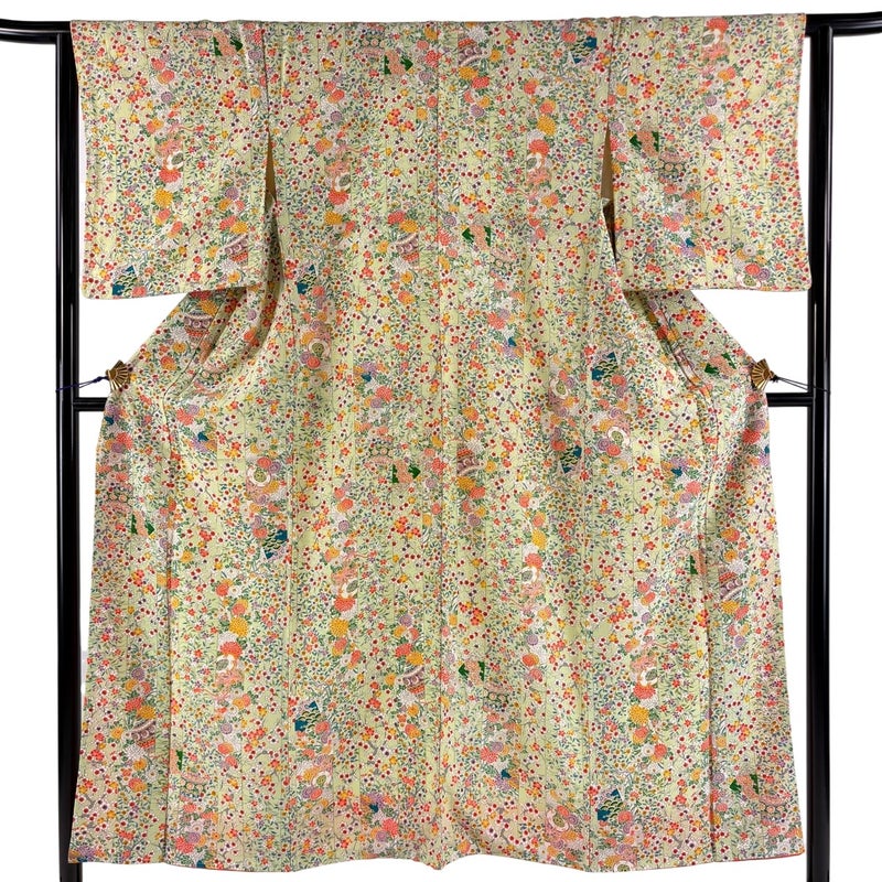 【着物ランク】優品 【素材】正絹 【身丈】約152.5cm 【裄丈】約63cm 【袖丈】約51cm 【袖幅】約33cm 【前幅】約22.5cm 【後幅】約29cm 【サイズ】S 【着物仕立て】袷 【着用時期】10~5月 【状態ランク】ランクB 【着物着用シーン】気軽なパーティー、観劇、食事会、正月、気軽なお茶会、街着