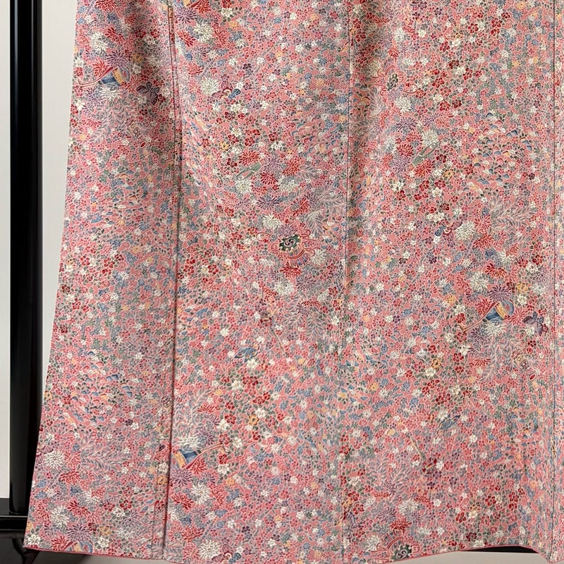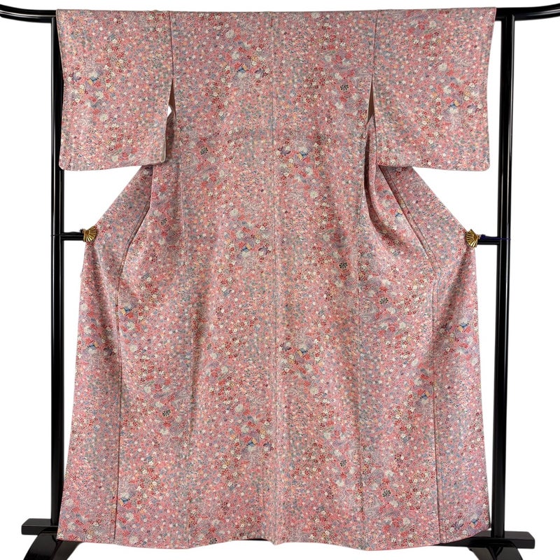 【小紋】 赤系 ピンク 優品 A 約160cm~約169cm 裄丈63cm-64cm (S)size 袖丈49cm 4000-7980 美品 二万以下