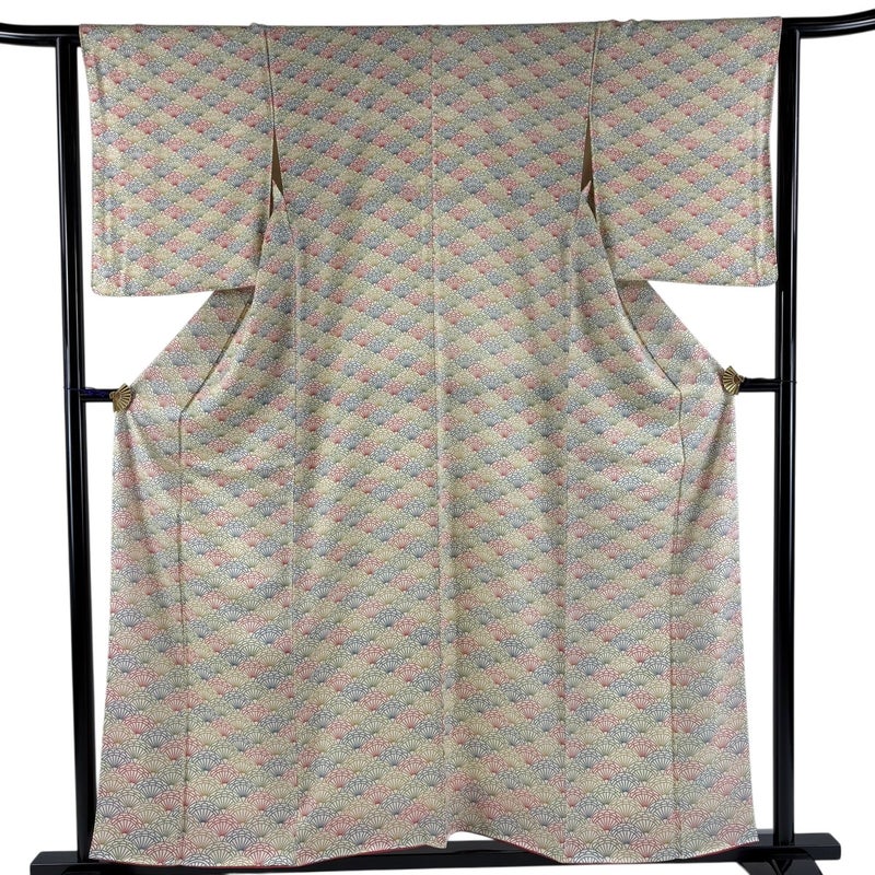 【小紋】 白系 クリーム 優品 A 約150cm~約159cm 裄丈63cm-64cm (S)size 袖丈50cm-60cm 4000-7980 美品 二万以下