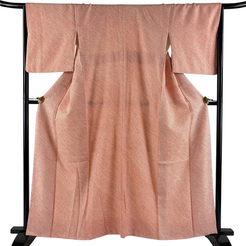 【小紋】 赤系 オレンジ 優品 B 約160cm~約169cm 裄丈66cm (M)size 袖丈48cm -3980 二万以下