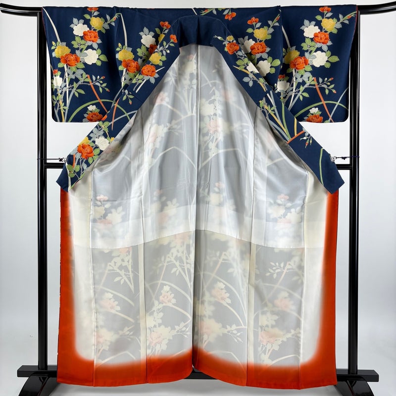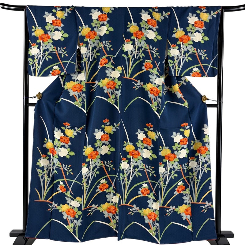 【着物ランク】優品 【素材】正絹 【身丈】約161.5cm 【裄丈】約66cm 【袖丈】約48.5cm 【袖幅】約34.5cm 【前幅】約23cm 【後幅】約30.5cm 【サイズ】M 【着物仕立て】袷 【着用時期】10~5月 【状態ランク】ランクB 【着物着用シーン】気軽なパーティー、観劇、食事会、正月、気軽なお茶会、街着