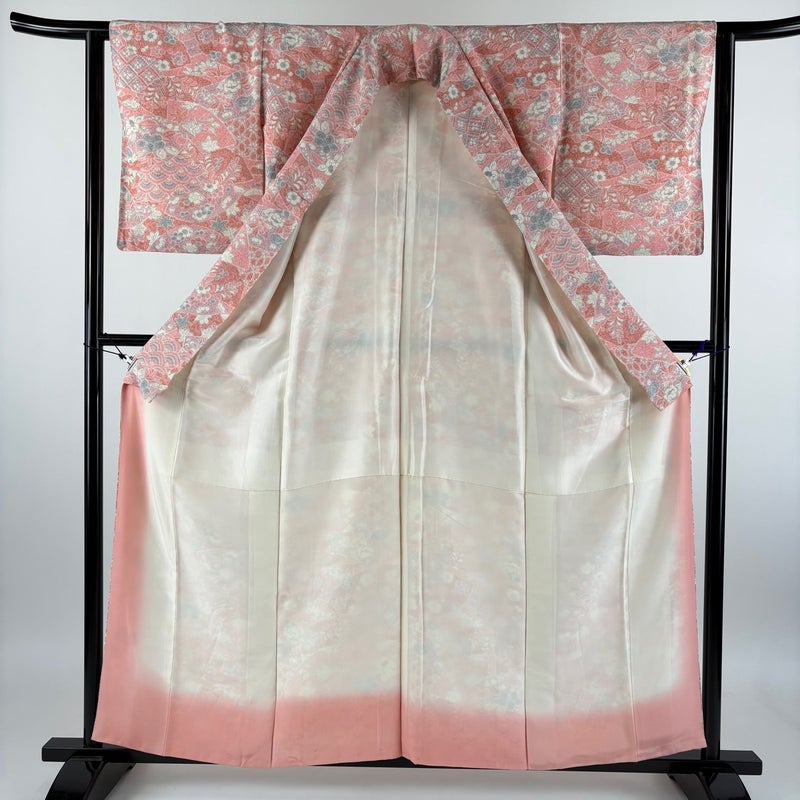 【着物ランク】優品 【素材】正絹 【身丈】約157.5cm 【裄丈】約62cm 【袖丈】約48.5cm 【袖幅】約32cm 【前幅】約23cm 【後幅】約28.5cm 【サイズ】S 【着物仕立て】袷 【着用時期】10~5月 【状態ランク】ランクA 【着物着用シーン】気軽なパーティー、観劇、食事会、正月、気軽なお茶会、街着