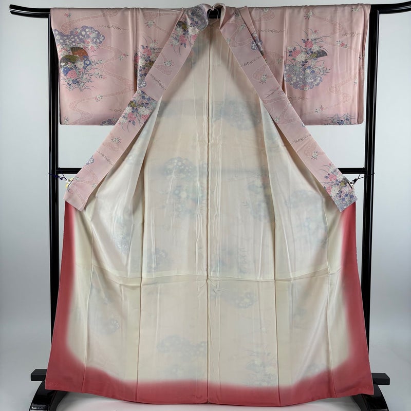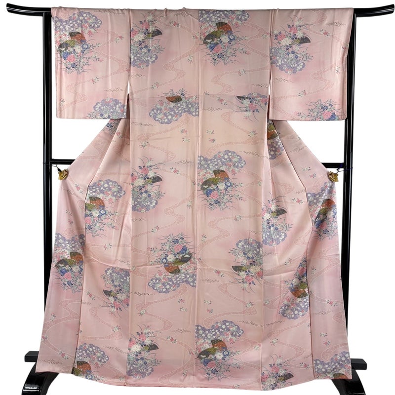 【着物ランク】優品 【素材】正絹 【身丈】約167cm 【裄丈】約65.5cm 【袖丈】約49cm 【袖幅】約33.5cm 【前幅】約24cm 【後幅】約30cm 【サイズ】M 【着物仕立て】袷 【着用時期】10~5月 【状態ランク】ランクB 【着物着用シーン】気軽なパーティー、観劇、食事会、正月、気軽なお茶会、街着