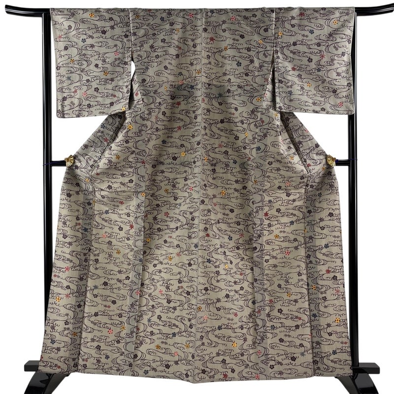 【小紋】 灰色系 灰色 逸品 A 約160cm~約169cm 裄丈65cm (M)size 袖丈49cm 30000- 美品 五万以上