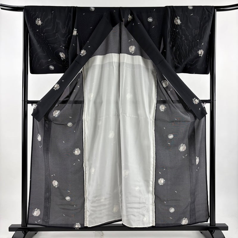 【小紋】 黒系 黒 名品 A 約150cm~約159cm 裄丈66cm (M)size 袖丈48cm 9990-29990 美品 五万以下