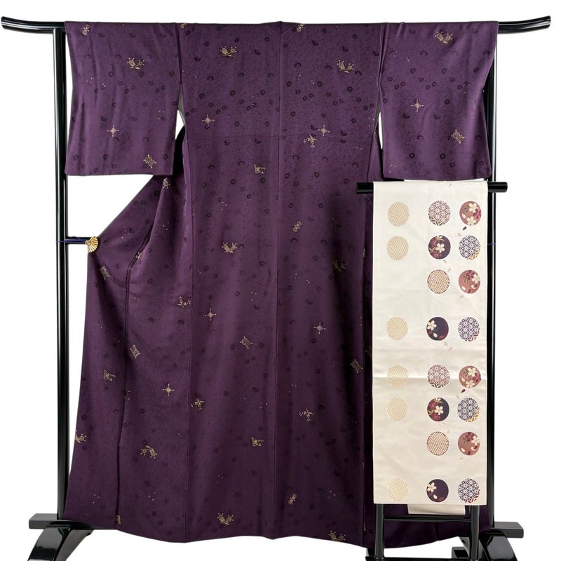 【小紋】 紫系 紫 秀品 B 約160cm~約169cm 裄丈65cm (M)size 袖丈48cm 9990-29990 五万以下