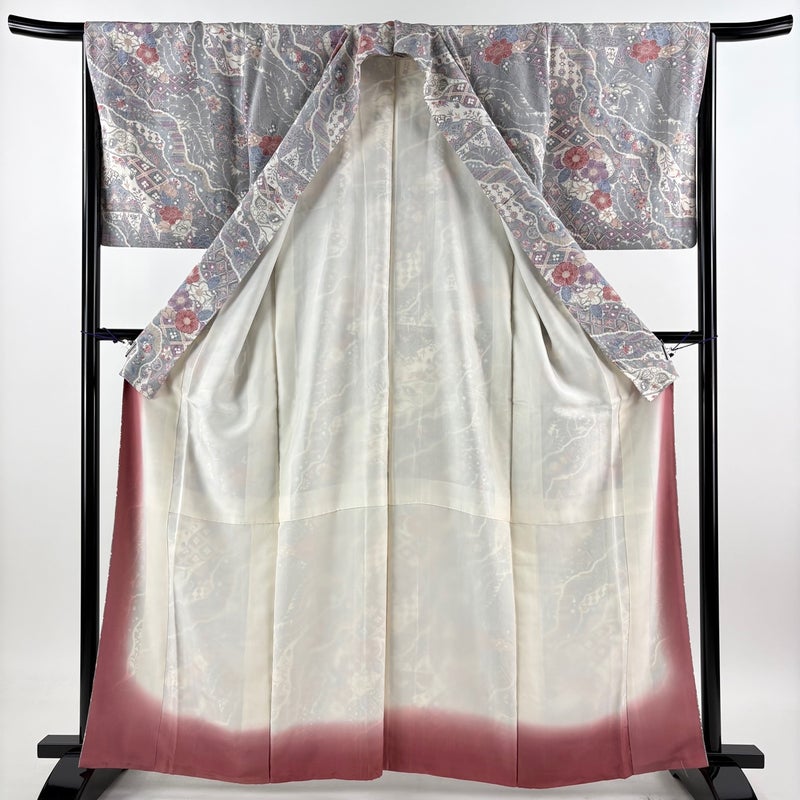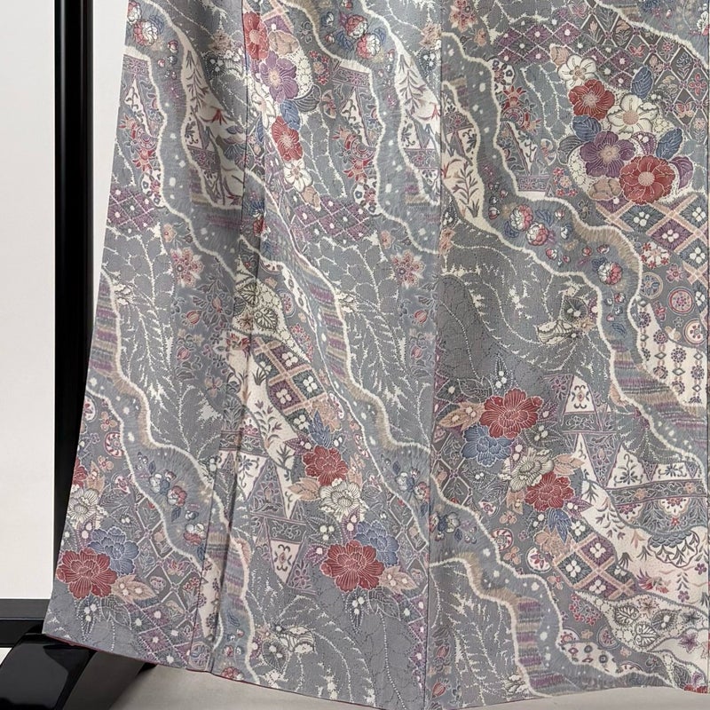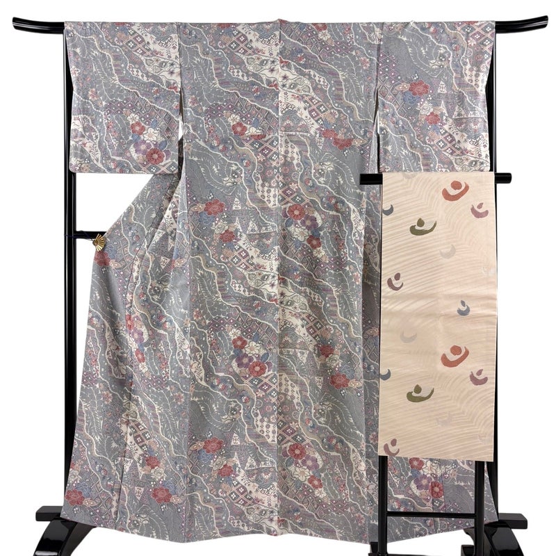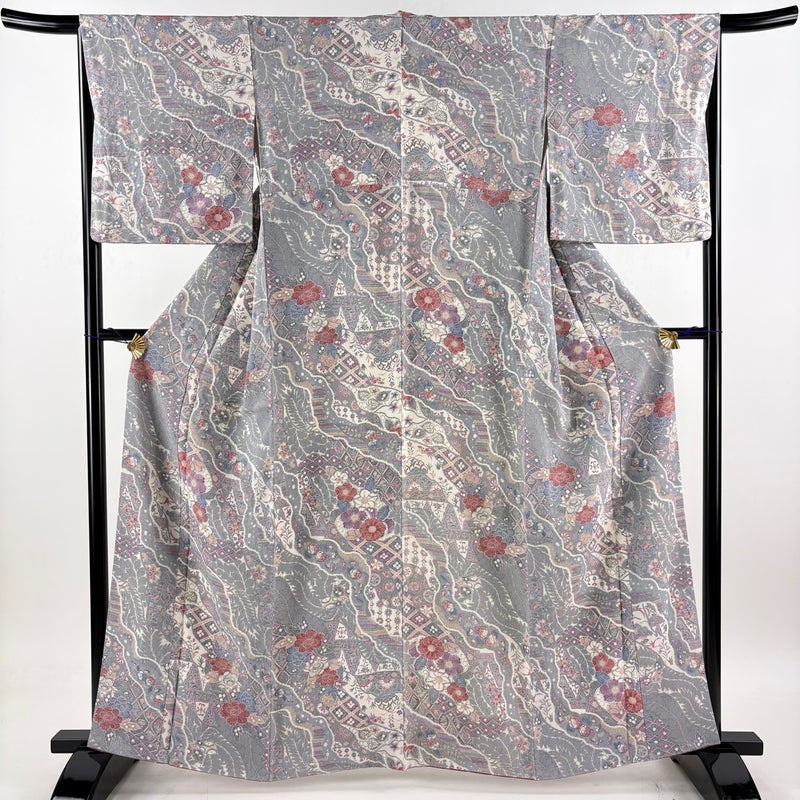【小紋】 灰色系 灰色 秀品 A 約160cm~約169cm 裄丈66cm (M)size 袖丈49cm 9990-29990 美品 五万以下