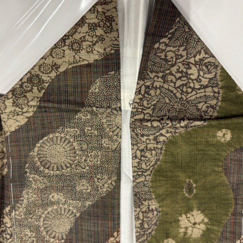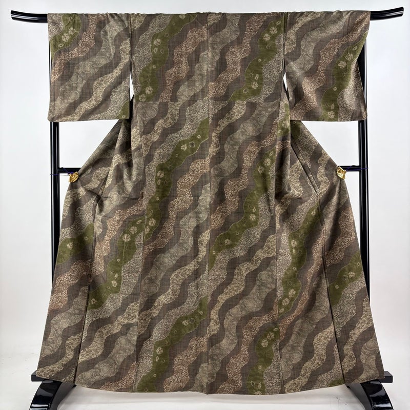 【小紋】 茶系 茶緑色 秀品 A 約160cm~約169cm 裄丈67cm-68cm (L)size 袖丈49cm 9990-29990 美品 五万以下
