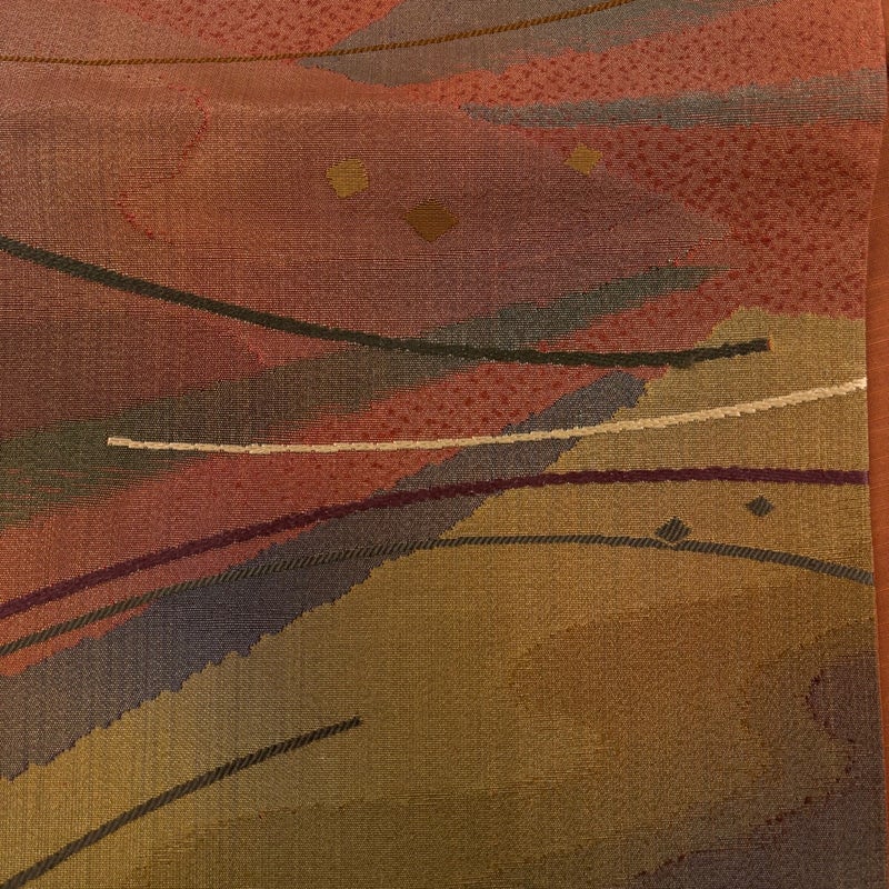 【着物ランク】秀品 【素材】正絹 【身丈】約164cm 【裄丈】約68cm 【袖丈】約49cm 【袖幅】約34.5cm 【前幅】約25.5cm 【後幅】約32cm 【サイズ】L 【着物仕立て】袷 【着用時期】10~5月 【帯丈2】約432cm 【帯幅2】約31cm 【状態ランク】ランクA 【着物着用シーン】気軽なパーティー、観劇、食事会、正月、気軽なお茶会、街着
