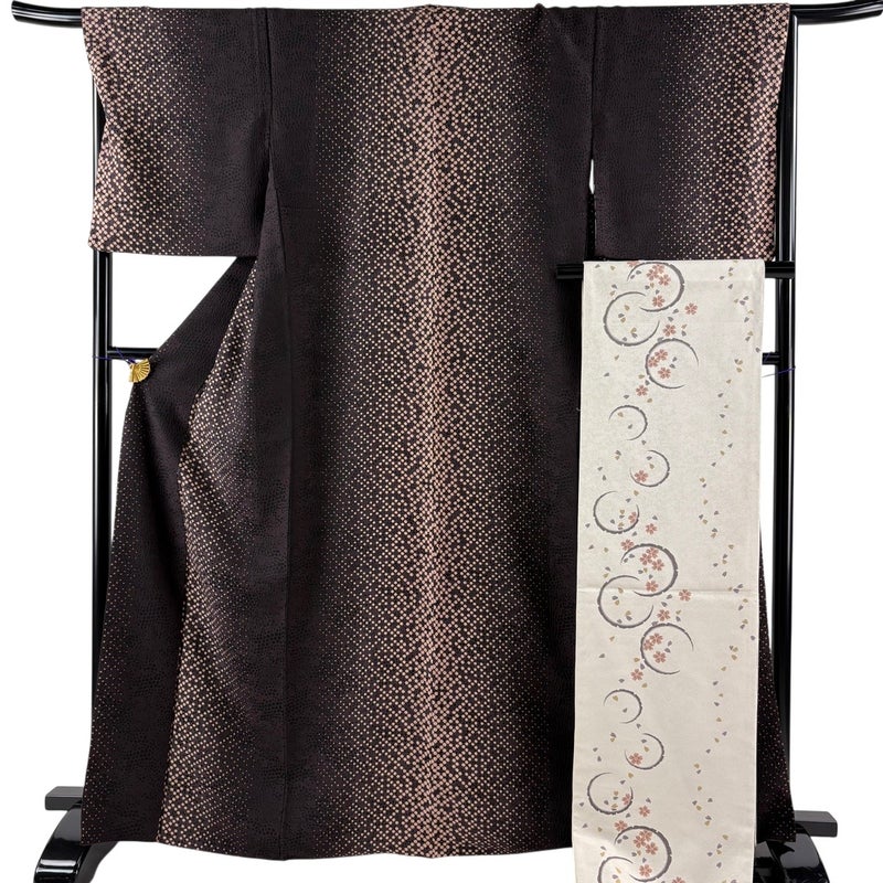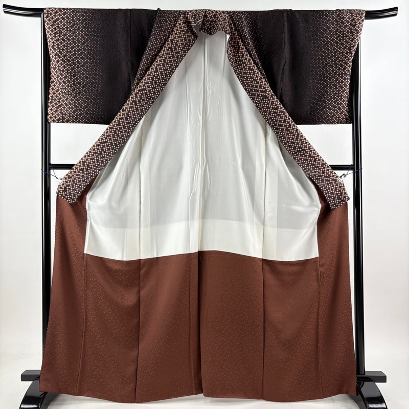【小紋】 茶系 焦茶色 名品 A 約160cm~約169cm 裄丈67cm-68cm (M)size 袖丈49cm 30000- 美品 五万以下