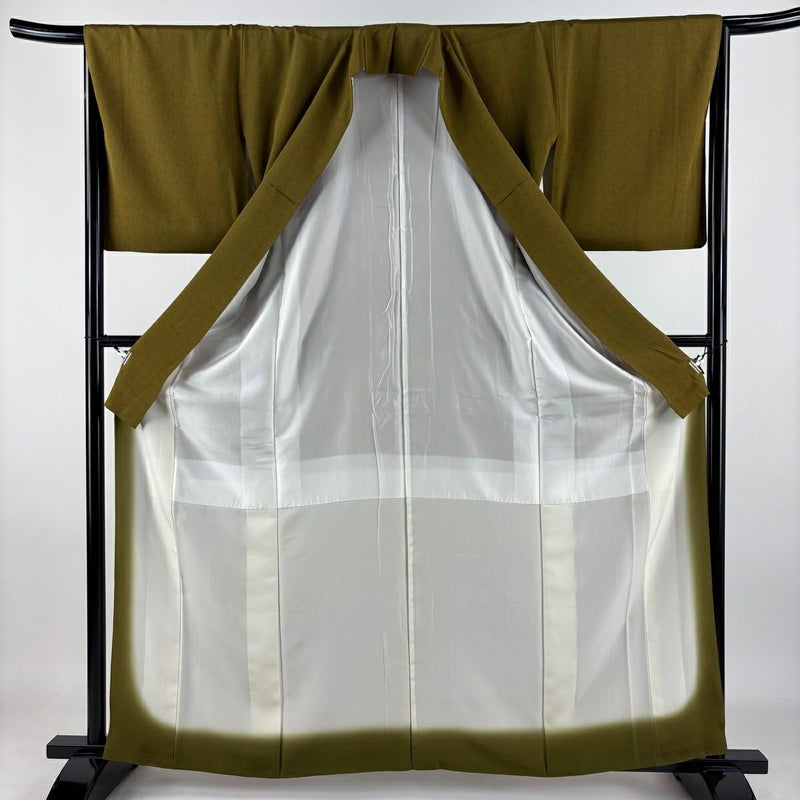 【江戸小紋】 茶系 茶緑色 逸品 B 約160cm~約169cm 裄丈65cm (M)size 袖丈48cm 7990-9980 二万以下