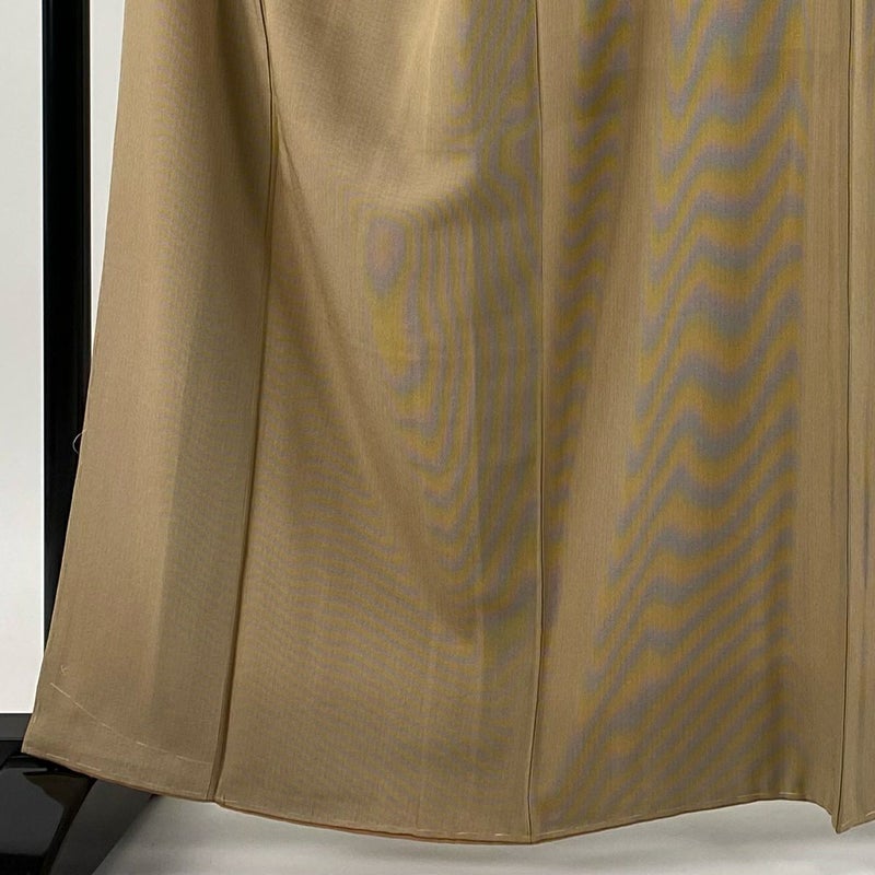 【着物ランク】秀品 【素材】正絹 【身丈】約163cm 【裄丈】約65cm 【袖丈】約49cm 【袖幅】約33cm 【前幅】約27cm 【後幅】約30.5cm 【サイズ】M 【着物仕立て】袷 【着用時期】10~5月 【状態ランク】ランクB 【着物着用シーン】気軽なパーティー、観劇、食事会、正月、気軽なお茶会、街着