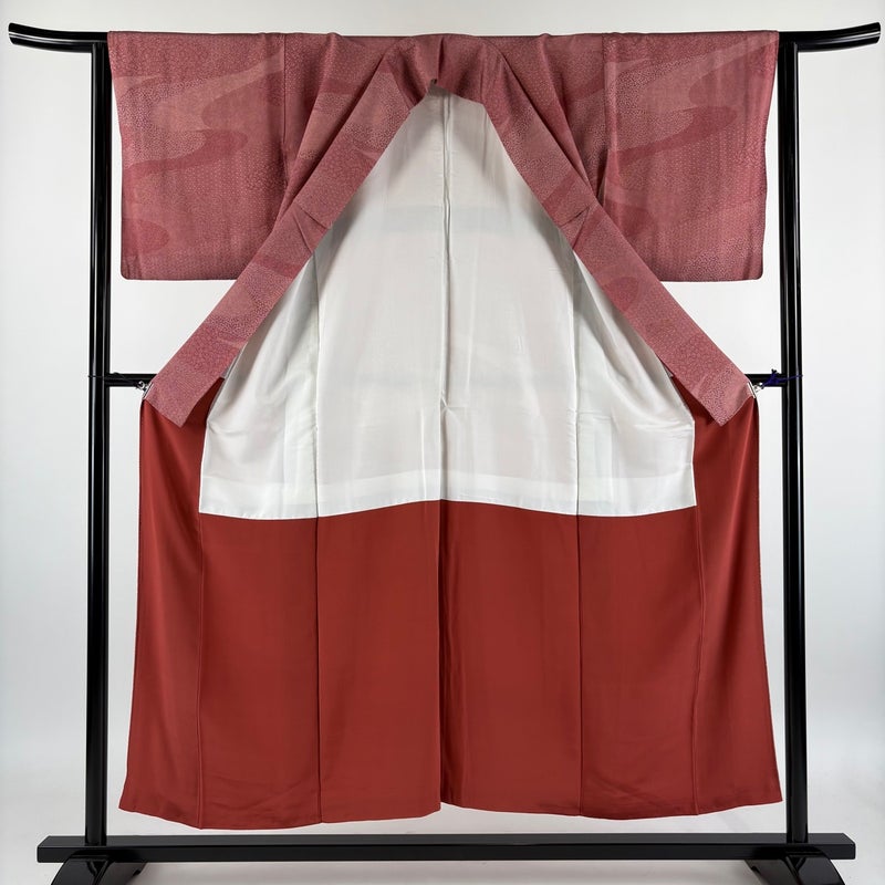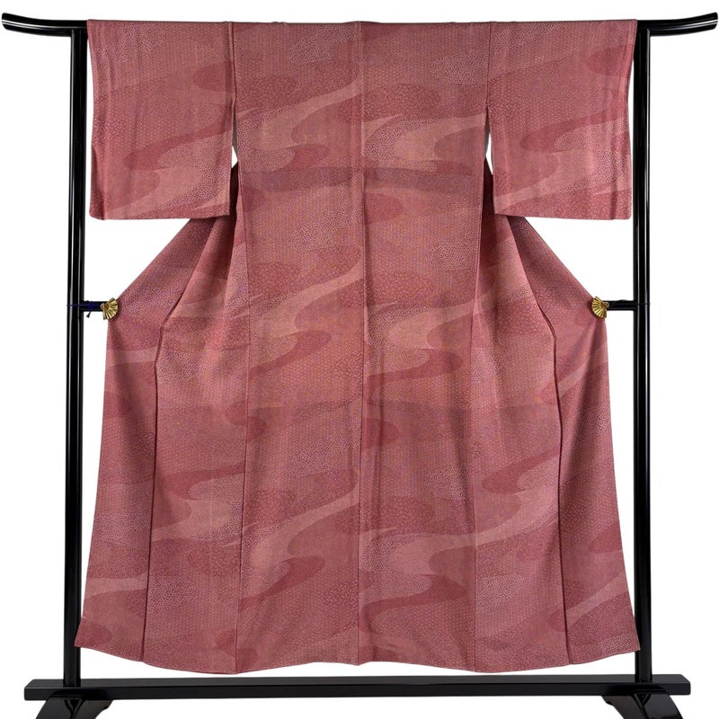 【着物ランク】優品 【素材】正絹 【身丈】約152.5cm 【裄丈】約63.5cm 【袖丈】約48.5cm 【袖幅】約33cm 【前幅】約23cm 【後幅】約28.5cm 【サイズ】S 【着物仕立て】袷 【着用時期】10~5月 【状態ランク】ランクA 【着物着用シーン】気軽なパーティー、観劇、食事会、正月、気軽なお茶会、街着