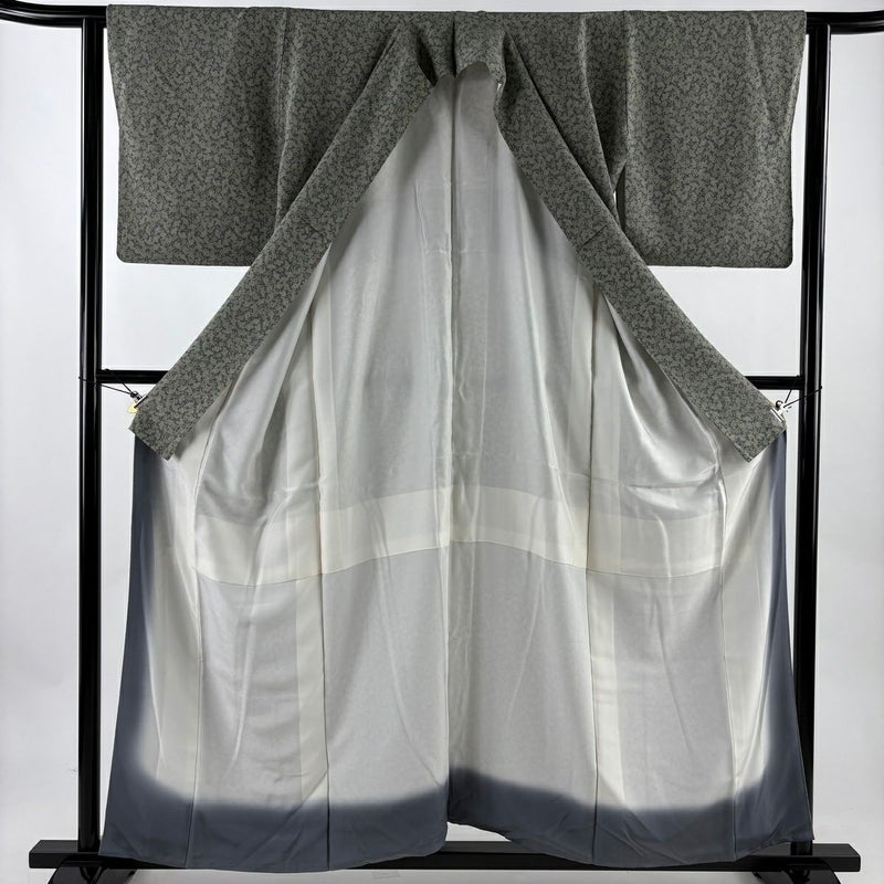 【江戸小紋】 灰色系 灰緑 名品 A 約150cm~約159cm 裄丈63cm-64cm (M)size 袖丈47cm 9990-29990 美品 二万以下