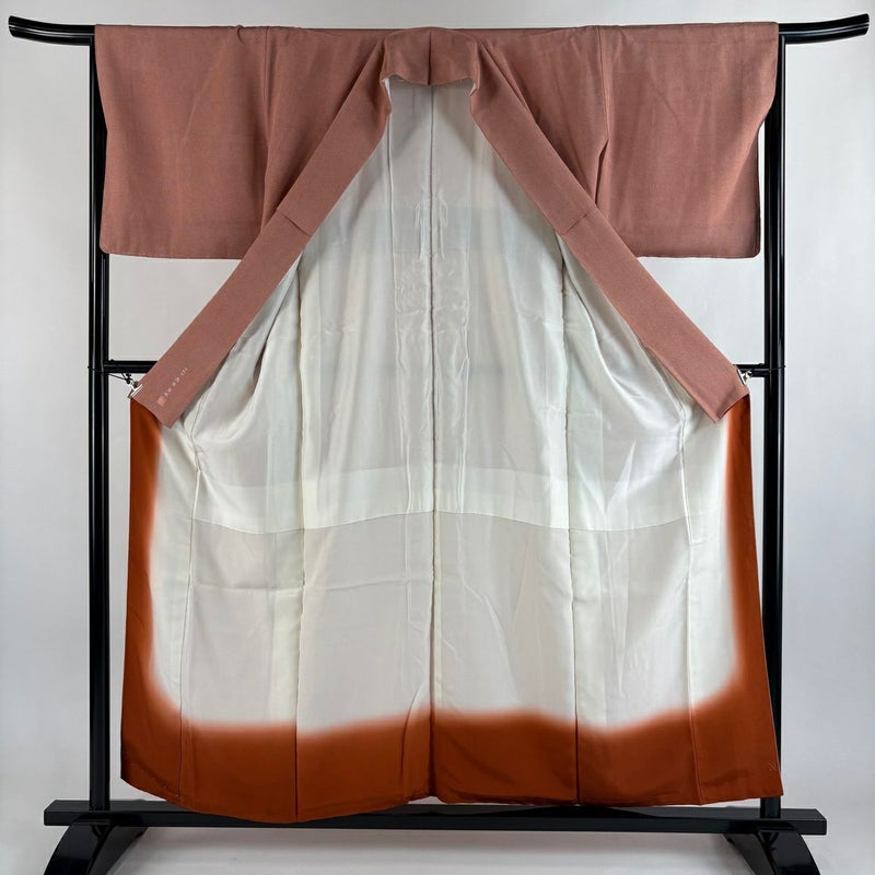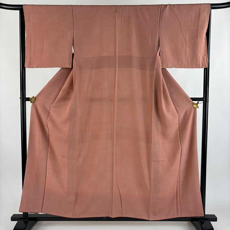 【江戸小紋】 赤系 サーモンピンク 秀品 A 約150cm~約159cm 裄丈63cm-64cm (M)size 袖丈46cm以下 7990-9980 美品 二万以下
