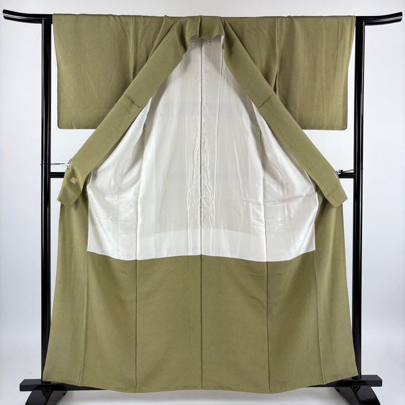 【江戸小紋】 緑系 鶯色 秀品 A 約150cm~約159cm 裄丈63cm-64cm (S)size 袖丈48cm 7990-9980 美品 二万以下