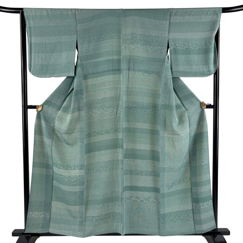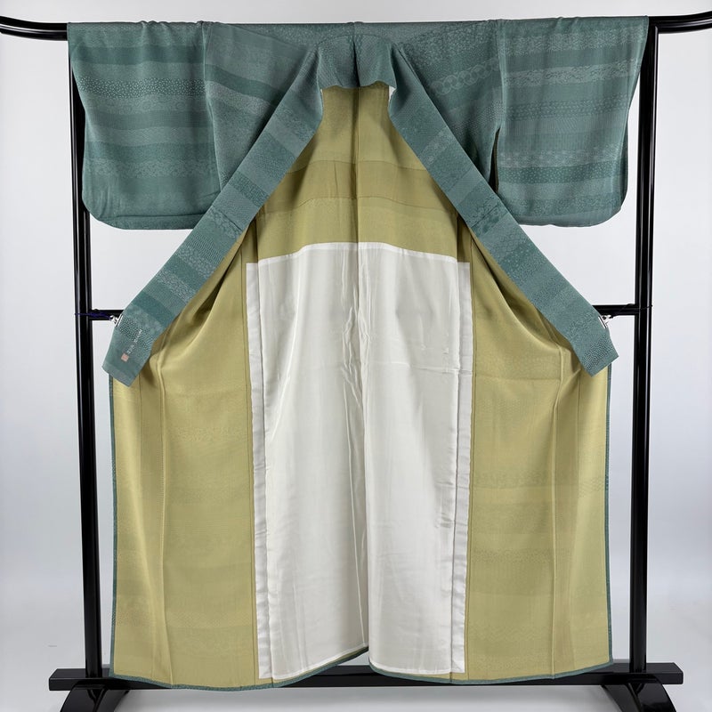 【江戸小紋】 緑系 緑 秀品 A 約150cm~約159cm 裄丈66cm (M)size 袖丈48cm 9990-29990 美品 二万以下