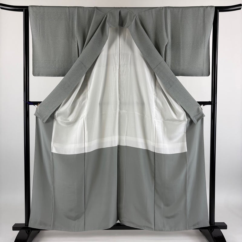 【江戸小紋】 灰色系 灰緑 秀品 A 約150cm~約159cm 裄丈63cm-64cm (M)size 袖丈49cm 7990-9980 美品 二万以下