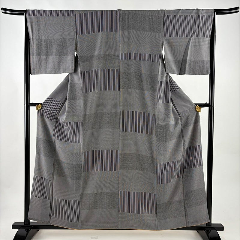 【江戸小紋】 灰色系 黒灰 名品 A 約150cm~約159cm 裄丈65cm (M)size 袖丈47cm 9990-29990 美品 二万以下