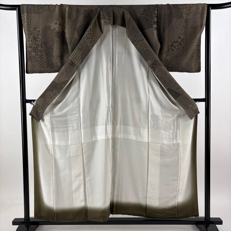 【江戸小紋】 茶系 茶緑色 秀品 A 約150cm~約159cm 裄丈65cm (M)size 袖丈47cm 7990-9980 美品 二万以下