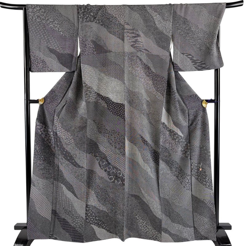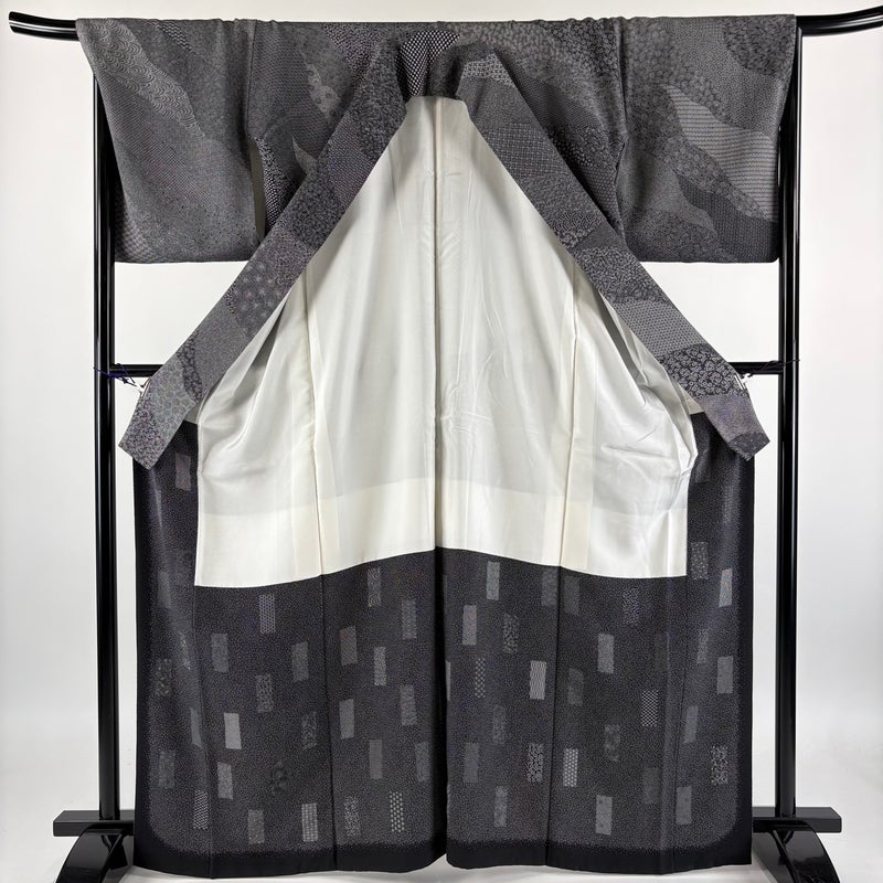 【江戸小紋】 灰色系 黒灰 秀品 A 約160cm~約169cm 裄丈67cm-68cm (L)size 袖丈47cm 7990-9980 美品 二万以下