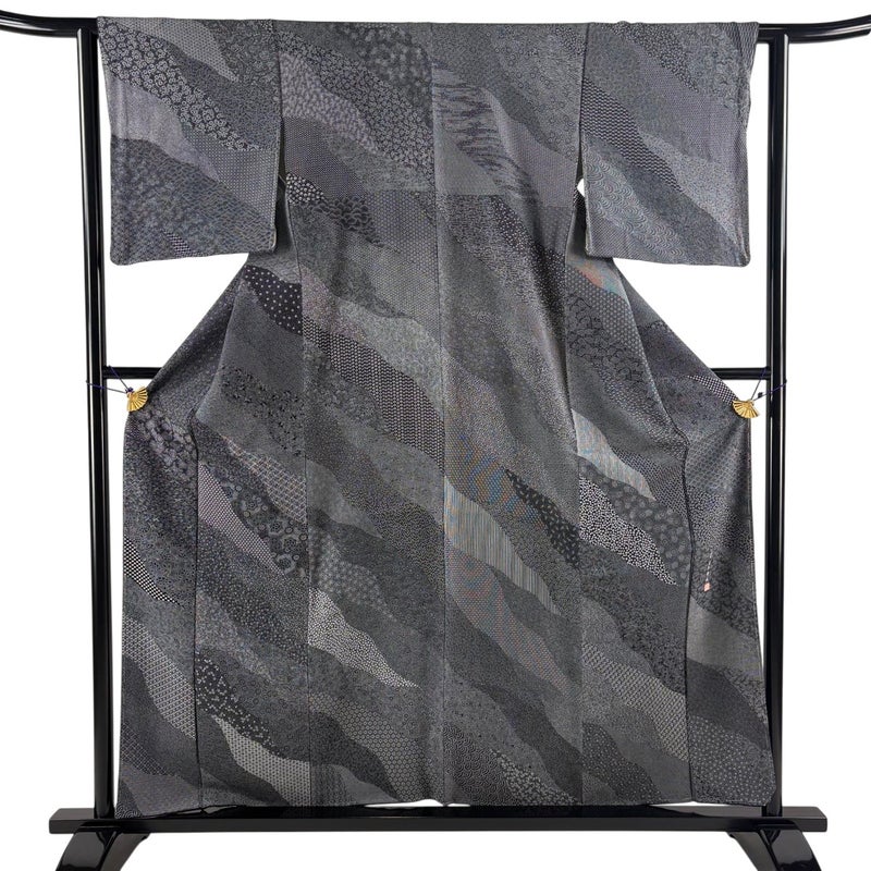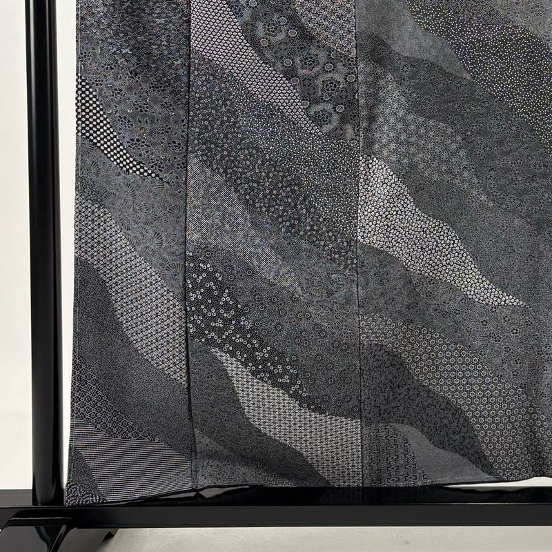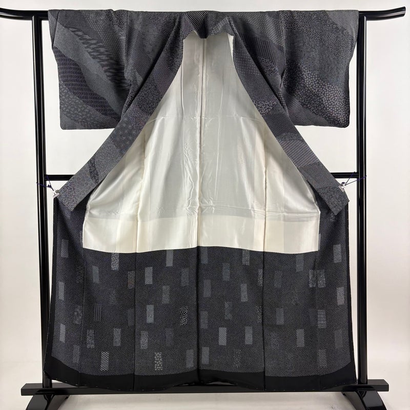 【江戸小紋】 黒系 墨色 秀品 A 約150cm~約159cm 裄丈62cm以下 (S)size 袖丈48cm 7990-9980 美品 二万以下