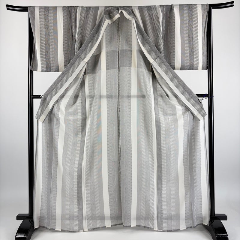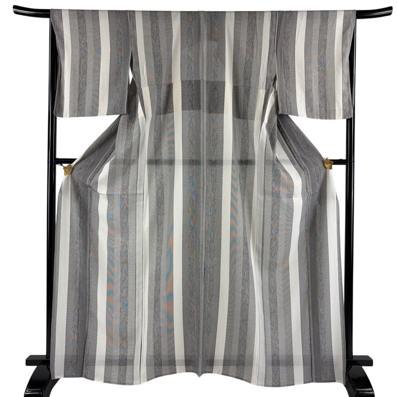 【着物ランク】秀品 【素材】正絹 【身丈】約165cm 【裄丈】約66.5cm 【袖丈】約48cm 【袖幅】約34cm 【前幅】約24.5cm 【後幅】約30.5cm 【サイズ】M 【着物仕立て】薄物 【着用時期】7~8月 【状態ランク】ランクB 【着物着用シーン】気軽なパーティー、観劇、食事会、正月、気軽なお茶会、街着