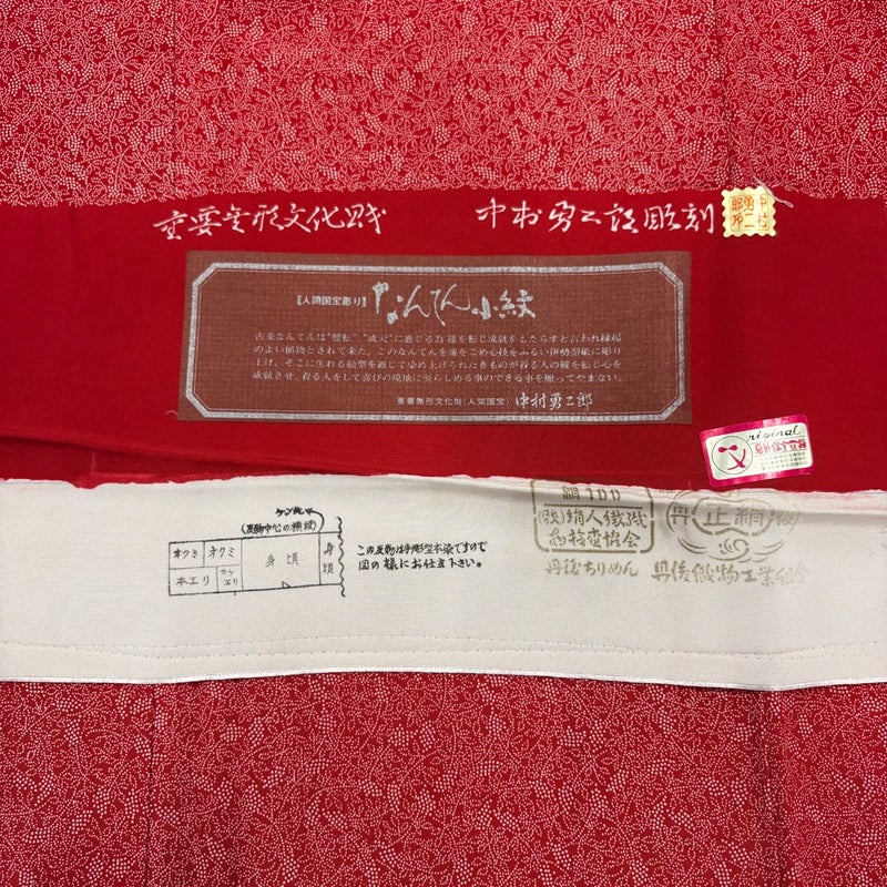 【着物ランク】名品 【素材】正絹 【身丈】約162.5cm 【裄丈】約65cm 【袖丈】約48.5cm 【袖幅】約33.5cm 【前幅】約23cm 【後幅】約28.5cm 【サイズ】M 【着物仕立て】袷 【着用時期】10~5月 【状態ランク】ランクA 【作家名】人間国宝 中村勇二郎 【着物着用シーン】気軽なパーティー、観劇、食事会、正月、気軽なお茶会、街着