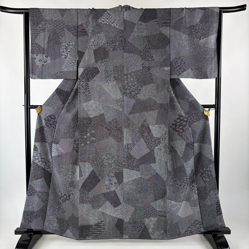 【江戸小紋】 灰色系 黒灰 秀品 A 約160cm~約169cm 裄丈65cm (M)size 袖丈49cm 7990-9980 美品 二万以下