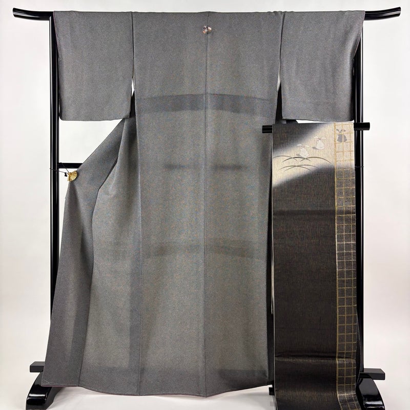 【江戸小紋】 灰色系 黒灰 名品 A 約160cm~約169cm 裄丈66cm (M)size 袖丈48cm 30000- 美品 五万以下