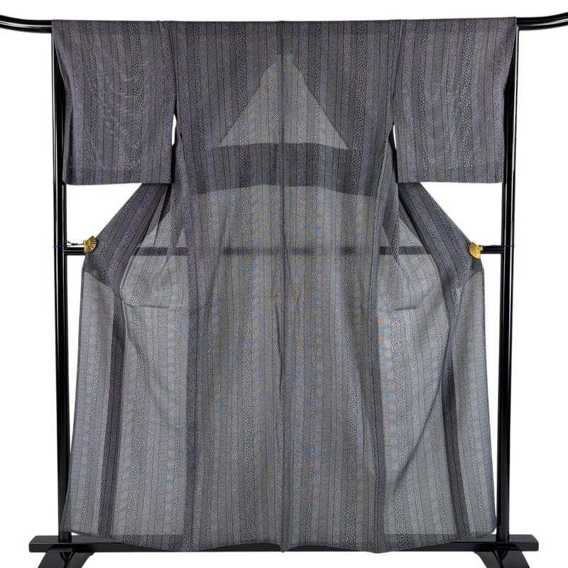 【着物ランク】秀品 【素材】正絹 【身丈】約158cm 【裄丈】約65.5cm 【袖丈】約49cm 【袖幅】約33cm 【前幅】約25.5cm 【後幅】約31cm 【サイズ】M 【着物仕立て】薄物 【着用時期】7~8月 【状態ランク】ランクA 【着物着用シーン】気軽なパーティー、観劇、食事会、正月、気軽なお茶会、街着