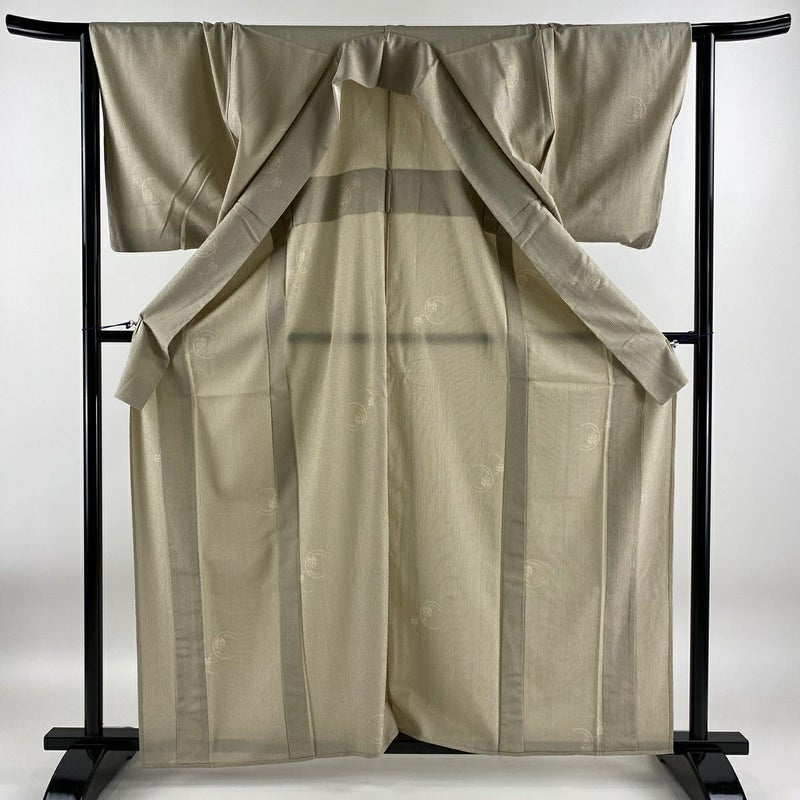 【紬】 白系 ベージュ 名品 A 約160cm~約169cm 裄丈65cm (M)size 袖丈49cm 9990-29990 美品 五万以下