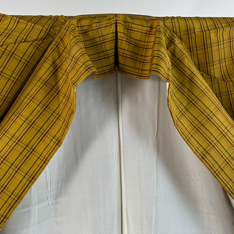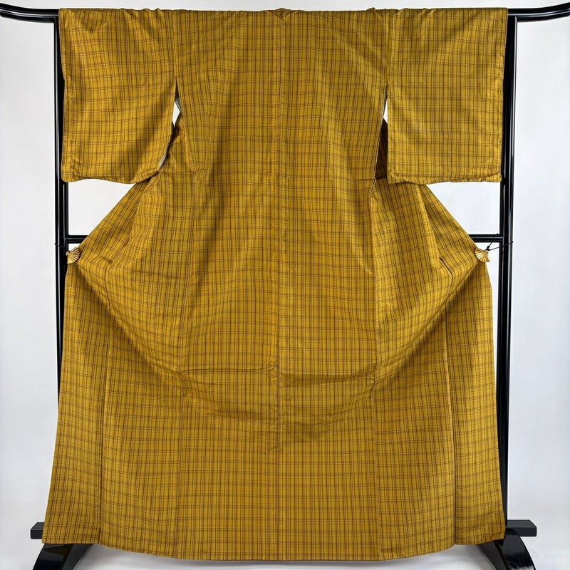【紬】 黄色系 黄土色 逸品 A 約160cm~約169cm 裄丈66cm (M)size 袖丈50cm-60cm 30000- 美品 五万以下