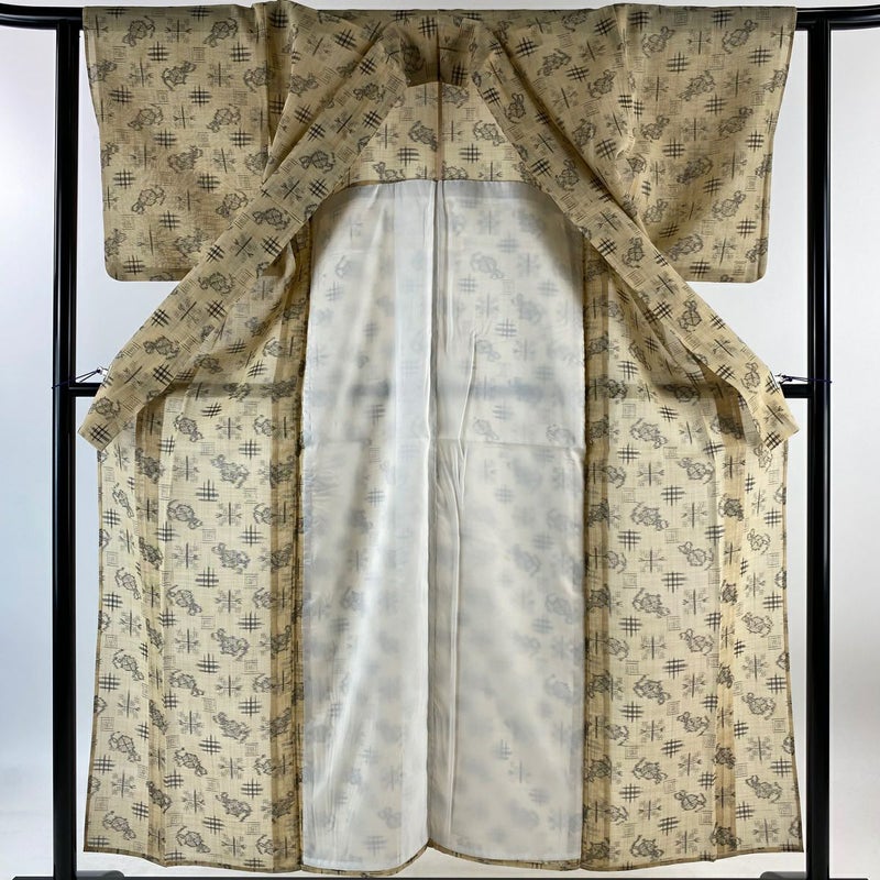 【紬】 白系 ベージュ 優品 C 約150cm~約159cm 裄丈62cm以下 (S)size 袖丈48cm 4000-7980 二万以下