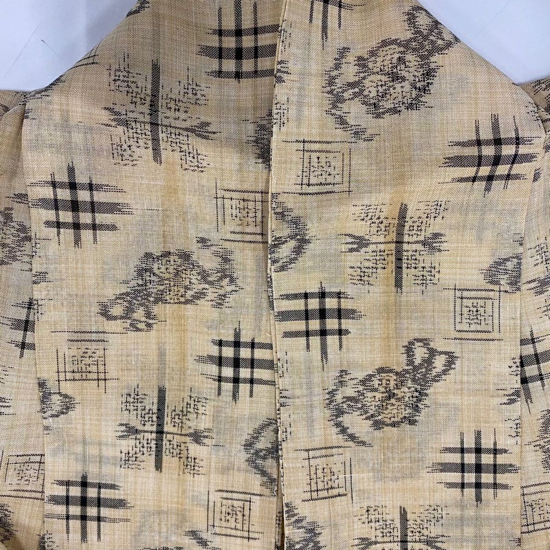 普段着やおしゃれ着として人気の紬でございます。 元々は日常着として着用していたので、その土地の風土に合った様々な種類がある素敵な一品です。 ※身丈・裄丈の縫込みの長さは測っておりません。 左前袖にシミ、衿周りや両袖口中に汚れがございます。 衿裏と居敷当てと背伏せにシミがございます。 ご購入の際はその点ご留意ください。 沢山の商品の中からご覧いただき誠にありがとうございます。